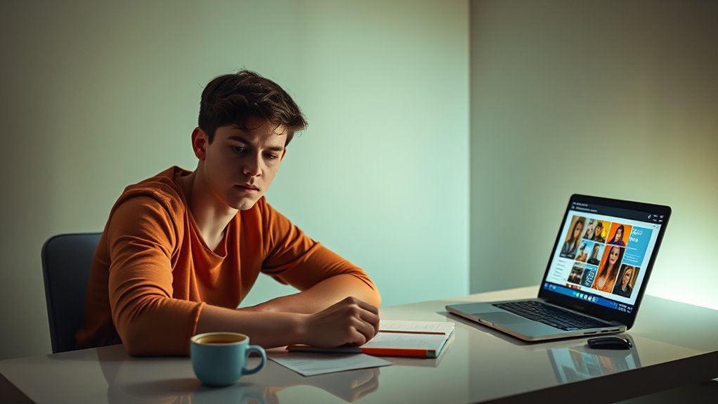 If you have high trait openness, you probably start off excited and enthusiastic to explore new connections on dating apps. This curiosity makes it easy to get hooked early, but it can also lead to decision fatigue as you process countless profiles. Over time, the novelty wears off, and the effort to sift through mismatched options becomes draining. Understanding how your openness influences this cycle can help you manage fatigue more effectively—more insights await if you keep exploring.