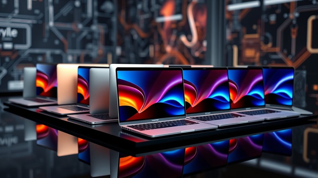 If you’re looking for the top Apple MacBook Air options of 2025, I’ve found several excellent models worth considering. The 13-inch with the powerful M4 chip stands out for its portability and performance, while the 15-inch variants offer larger screens and strong processing power, like the M3 and M4 options. Whether you prioritize lightweight design or advanced features, these models cater to different needs. Keep exploring, and you’ll discover which one fits your lifestyle best.