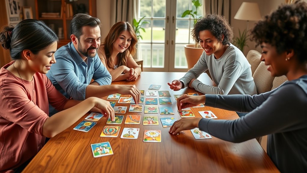 Choosing the right conflict resolution card game depends heavily on the age group of the players, as different ages have distinct cognitive and emotional needs. It’s essential to select a game designed for the players’ maturity level to promote understanding and engagement. For children, look for games with simple language, visual aids, and themes suited to their developmental stage, making it easier for them to grasp concepts and participate actively. For teenagers and adults, choose games that feature more complex scenarios and refined conflict strategies, which challenge and foster skill development. Always check the manufacturer’s recommended age range to guarantee the game matches the players’ cognitive and emotional growth. This careful consideration helps create a meaningful, age-appropriate experience that encourages peace and understanding.