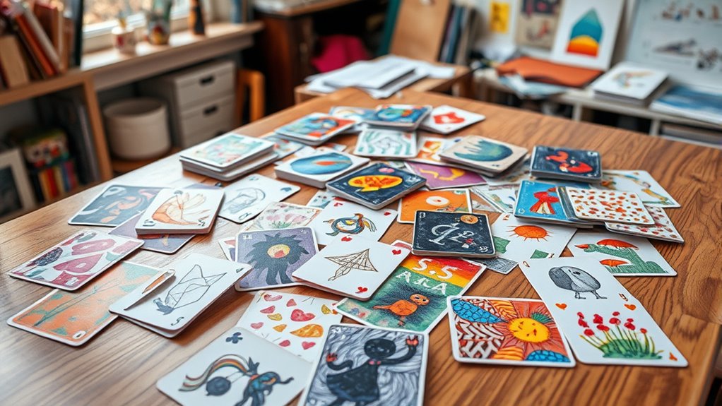 If you’re looking to boost your creativity, I recommend exploring some top prompt decks like The Endless Art Challenge, Writing Down the Bones, and The Cantigee Oracle. These decks offer versatile prompts that inspire art, writing, storytelling, and self-reflection, perfect for breaking through creative blocks or trying new formats. With various themes and engaging designs, there’s something for everyone. Keep going to discover detailed insights on each deck, helping you choose the perfect one to spark your imagination.