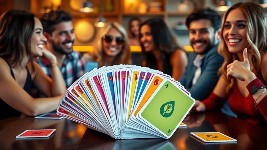 Since ease of play can make or break the overall experience, I look for flirting skill card games with simple rules that new players can quickly comprehend. Clear instructions and straightforward card prompts are essential because they reduce confusion and make the game accessible to everyone, regardless of skill level. I also consider how smoothly turns flow and whether setup time is minimal, allowing us to focus on interaction rather than complex procedures. A user-friendly design with intuitive prompts encourages spontaneous conversations and lowers the barrier to starting flirtatious scenarios. Additionally, quick gameplay cycles, lasting about 15-30 minutes, keep the energy high and prevent the game from feeling cumbersome or overwhelming. Overall, simplicity guarantees everyone stays engaged and enjoys the experience.