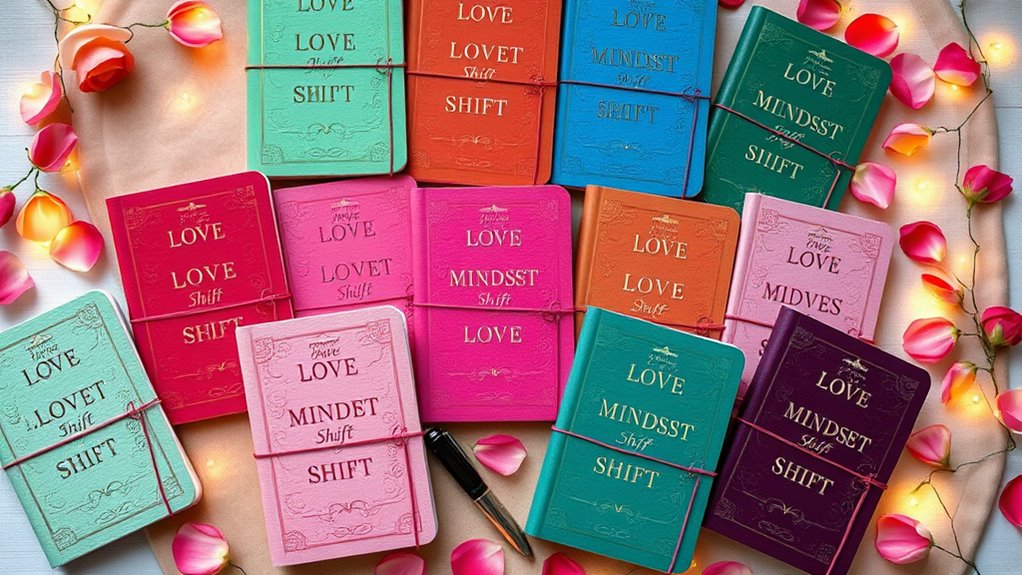 Looking to transform your romantic outlook? I’ve explored some of the top love mindset shift journals that promote self-love, emotional healing, and positive relationship beliefs. These journals feature guided prompts, mindfulness exercises, manifestation techniques, and inspiring designs to keep you motivated. They’re perfect for cultivating gratitude, confidence, and resilience. Keep exploring, and you’ll discover which tools and prompts can best support your journey to a healthier, happier love life.