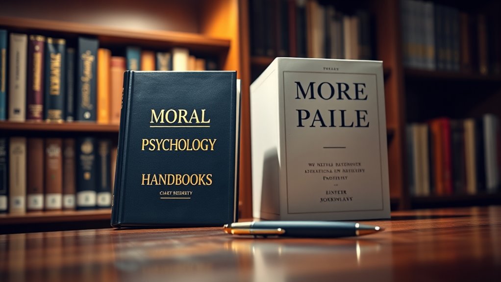 If you want to master moral psychology in 2025, I recommend focusing on two key handbooks. First, the Moral Psychology Handbook P offers an in-depth, interdisciplinary overview perfect for scholars and serious students. Second, The Moral Healers Handbook explores spiritual and cultural dimensions, linking psychology with mystical traditions. These resources combine theory, empirical data, and practical insights, giving you a well-rounded understanding. Keep going, and you’ll uncover even more about how morality shapes us all.