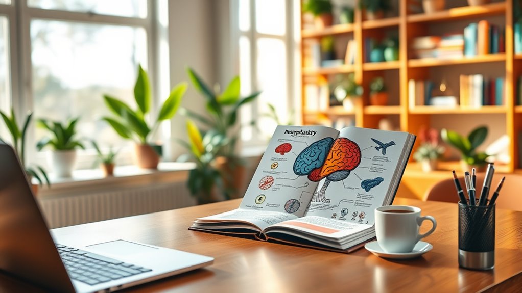 If you’re looking to boost your brain power in 2025, I recommend exploring top neuroplasticity workbooks like “Retrain Your Brain” for CBT tools, “Intentional Neuroplasticity” for trauma-informed growth, and the “Stroke Recovery Activity Book” to support rehabilitation. Books that combine science-backed techniques with practical exercises can make a real difference. Keep in mind factors like credibility, targeted goals, and engaging activities—continue exploring for the best fit for your journey.