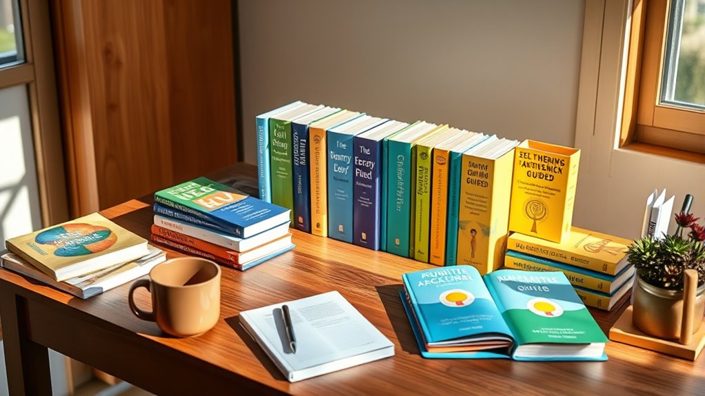 To choose the best self-therapy book for my needs, I first identify my specific goals—whether it’s managing anxiety, building resilience, or understanding myself better. I then look for books with positive reviews, clear exercises, and author credentials. I also consider my preferred style, whether it’s practical, reflective, or journal-based. Finally, I trust my gut feeling about which book resonates most with me to guarantee I stay motivated.