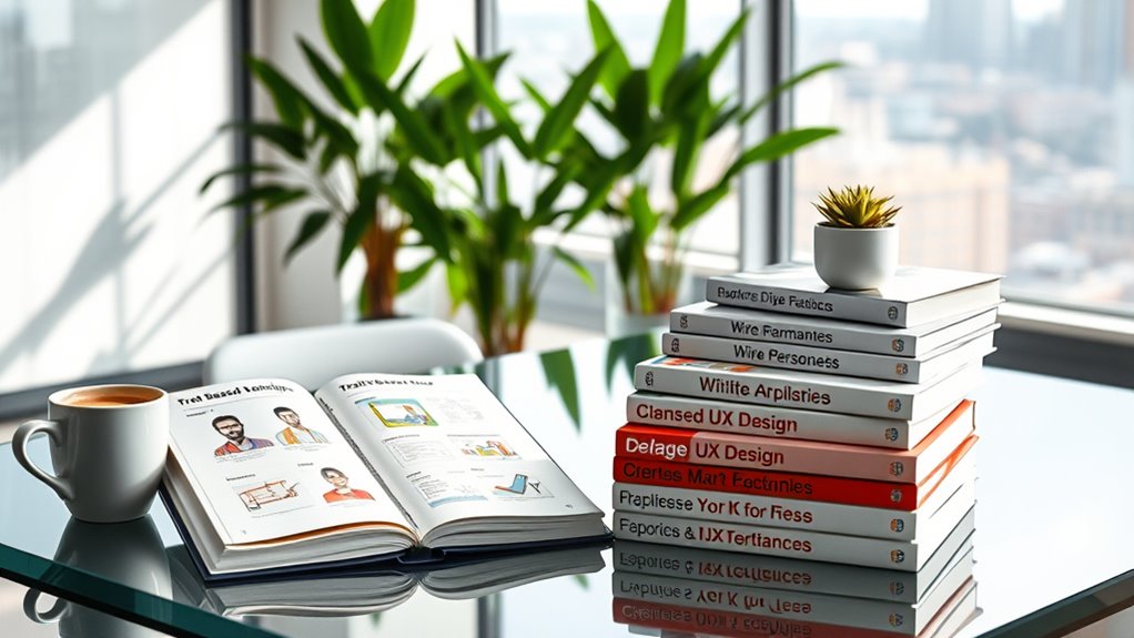 If you’re exploring trait-based UX design, I recommend six standout books that cover core principles and practical insights. *A Project Guide to UX Design* offers real-world tips and project management strategies, while *Conversations with Things* brings humor and fresh perspectives on chat and voice interfaces. *UX Design: A Field Guide* Simplifies fundamentals, and *Get Into UX* guides job seekers with actionable advice. *The Basics of User Experience Design* builds foundational knowledge, and *The UX Design Field Book* serves as a handy reference. Keep going to uncover how each resource can elevate your skills.