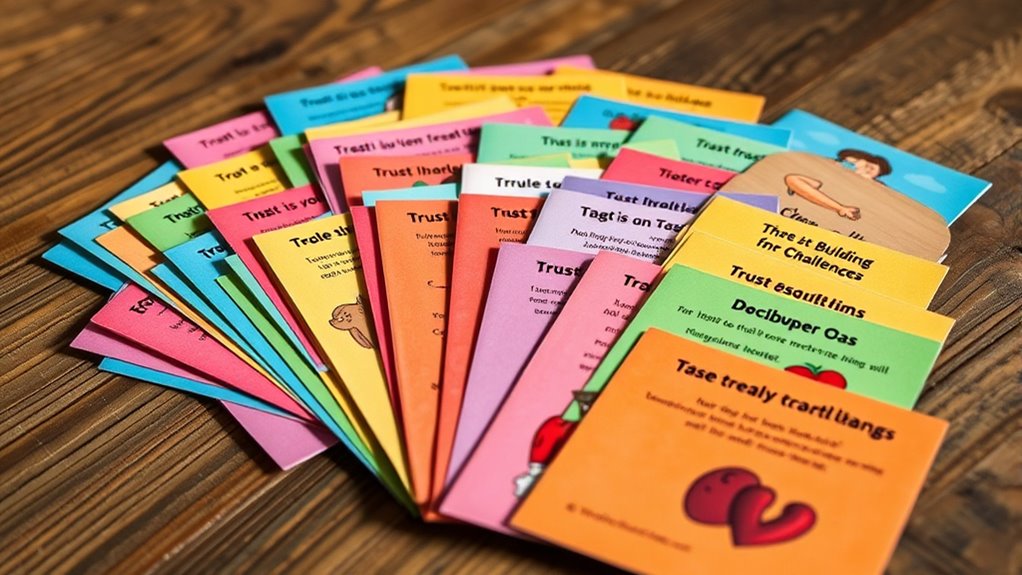 If you’re looking to strengthen relationships today, trust-building challenge cards are a great tool. From conversation starters and emotional intelligence prompts to trauma-informed and deepening connection cards, there’s a variety to fit different needs. These decks promote honesty, empathy, and understanding in personal, professional, and group settings. With attractive designs and versatile uses, they’ll help foster meaningful interactions. Keep exploring to find the best options tailored for your relationship growth journey.